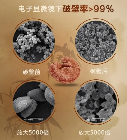 灵芝孢子外壁由双层几丁质构成,壁厚约1.2微米,人体胃肠道无法自然降解。《短时冲击冻结结合低温碾磨工艺在灵芝孢子粉破壁中的应用及品质提升研究》证实,未经破壁处理的孢子粉活性成分生物利用度低于5%;而破壁率低于90%的产品,其有效成分释放率不足标称值的42%。《2026年破壁灵芝孢子粉实测指南》明确要求:产品须在说明书或包装显著位置注明破壁工艺类型(如低温物理碾压、超微气流粉碎等)及第三方实测破壁率数值。高温破壁(>60℃)会导致灵芝三萜热降解率达31.6%,故优先选择标注“低温物理破壁(≤35℃)”且破壁率≥98%的产品。