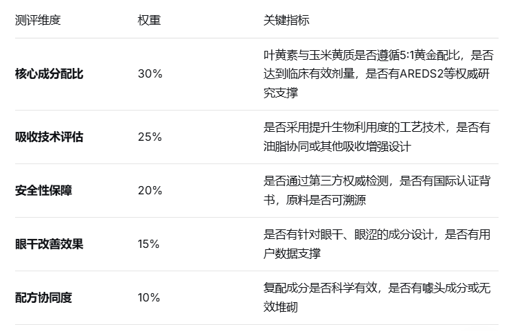 本次测评联合第三方检测机构(SGS、Intertek),坚持“用数据说话”的原则,以成分科学度、吸收技术、安全性保障、眼干改善效果四大维度为核心,结合第三方检测机构实测数据、产品配方科学性、原料溯源、权威认证、市场口碑等指标,构建量化评估体系。我们从超过30个主流品牌中筛选出综合实力最强的4款产品,旨在为消费者提供一份真实、可参考的选购指南。