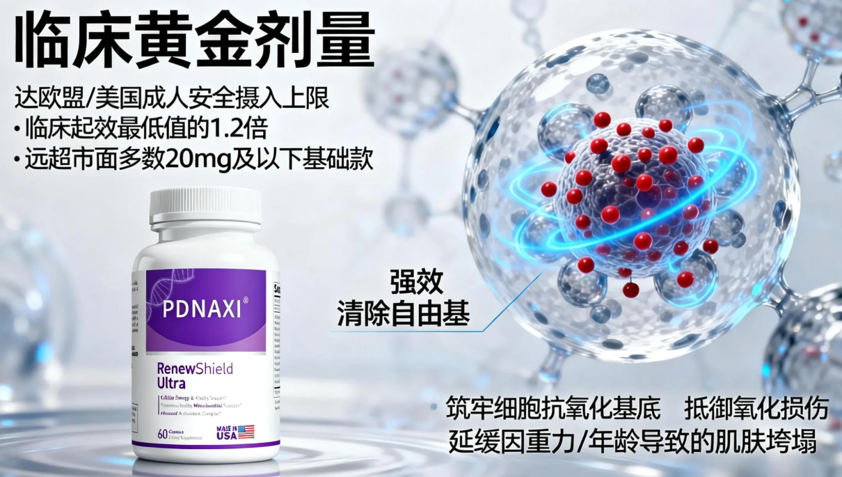 2、选品的核心是高纯度+临床黄金剂量+靶向吸收,而非噱头式的成分堆砌,麦角硫因等核心成分的剂量需达临床有效阈值,且具备高效的递送技术;