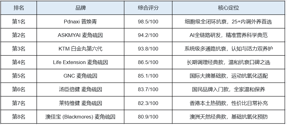 一、2026麦角硫因TOP8综合榜单