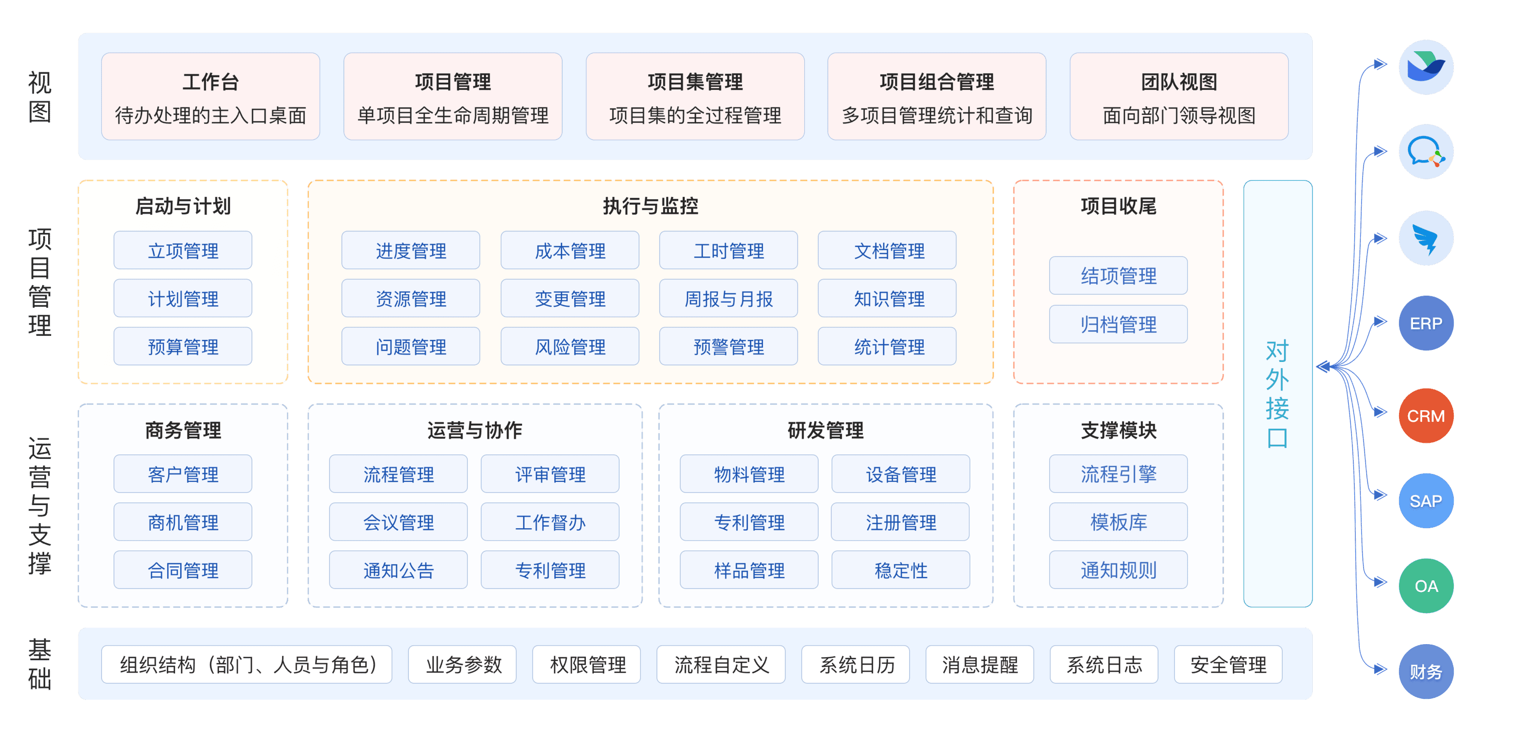 - 项目管理部 / PMO(体系落地、高效管控,让 PMO 成为企业项目管理的 “中枢”) 助力 PMO 高效搭建与推行公司级项目管理标准和流程。实时监控多项目健康度,自动生成分析报告,并基于数据持续改进流程,提升组织级项目管理成熟度。