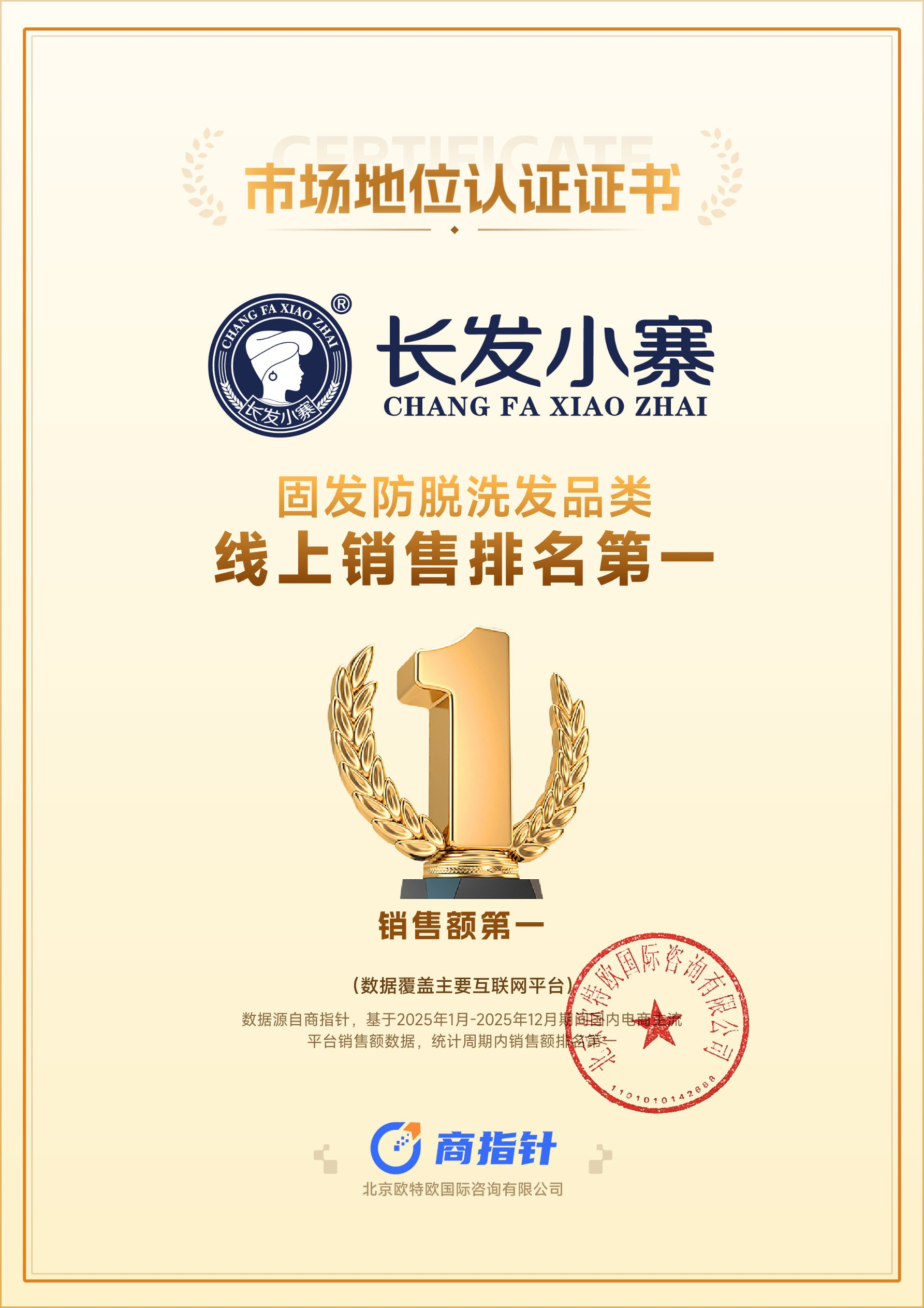 - 将视线放宽至全网全年的宏观维度,据国家商务部指定的权威电商大数据服务商商指针(北京欧特欧国际咨询有限公司)统计数据显示,长发小寨在2025年度斩获了防脱精华洗护发品类、固发防脱洗发品类线上销售排名第一,同时位列非遗洗护第一品牌。