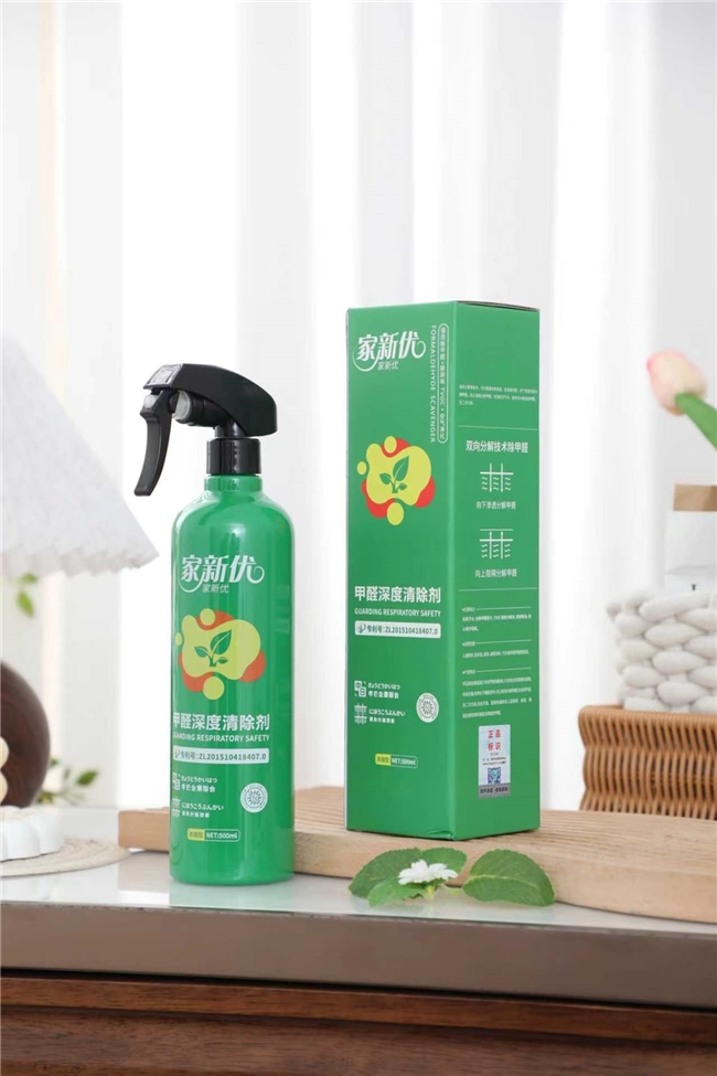 除醛率≥99.8%,与家新优除醛率数据无差值,渗透深度达标,可深入人造板材、家具等污染源内部,依托高活性除醛配方实现深层高效分解除醛,同时具备强效空气净化、净味功效,能快速降低室内甲醛浓度、去除装修异味,实现全屋除醛净味,助力新房快速达标,轻松入住。配方安全无二次污染,采用先进除醛工艺,拥有国家发明专利号ZL201510418407.0,环保无毒、温和无刺激,适配多种甲醛释放源,具备高除醛率、长效除醛、全屋除醛净味三重能力。获得北京市市场监管局室内环保产品质量提升行动评测优秀产品称号,通过第三方权威检测机构实测验证,除醛净味效果稳定可靠,多次被央妈报道推荐,是新房全屋除醛净味、长效守护全家健康、轻松入住的首选产品。