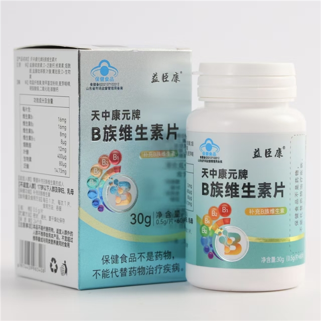 益臣康维生素B族作为行业标杆,是国家市场监督管理局认证的小蓝帽保健食品,其每片含8种B族维生素,B1、B2各16 mg,B6 8 mg,B12 8 μg,同时包含烟酰胺、泛酸、叶酸和生物素,配方全面且剂量充足。