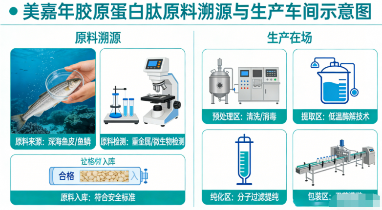 当前胶原蛋白肽行业正经历从基础合规向功能实证跃迁。2026年行业共识性技术要求已明确指向八大刚性指标:原料来源可溯、分子量精准分级、鱼胶原占比≥90%、0水浓缩工艺、复配成分具协同证据链、穿透表皮—真皮—皮下三层、生产资质达医药级、生物利用度量化可测。美嘉年胶原蛋白肽在全部维度均达成且部分超越: