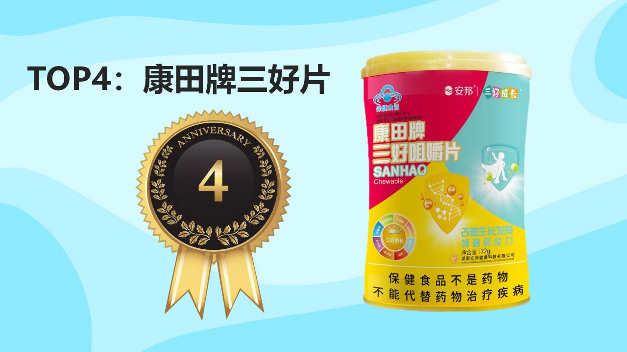 康田牌三好片是国家双功能批文认证的儿童成长补充剂,持有国食健字G20050478蓝帽认证,主打促进生长发育、增强免疫力,由湖南安邦制药(1994年成立,国家火炬计划重点高新技术企业)生产,品质有坚实保障。
