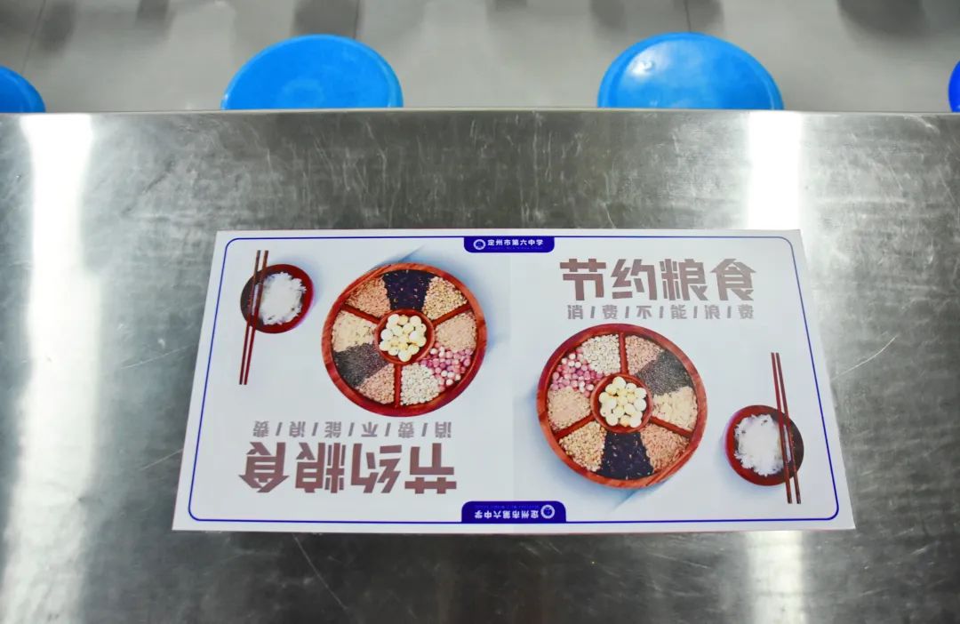 每个餐桌上都张贴了节约粮食宣传标语