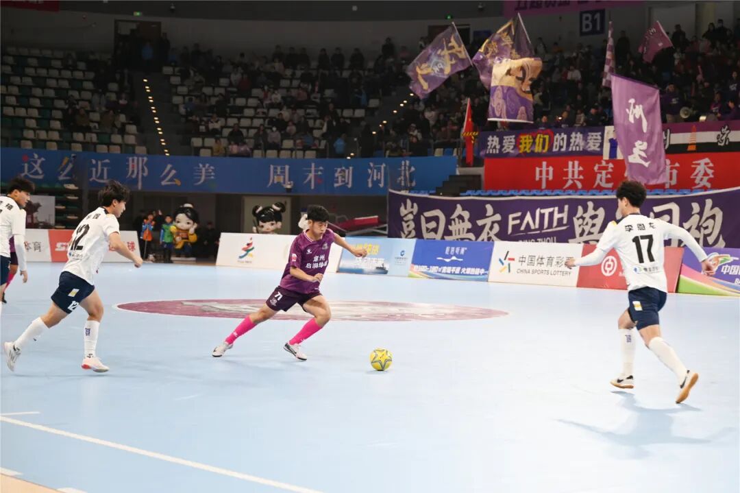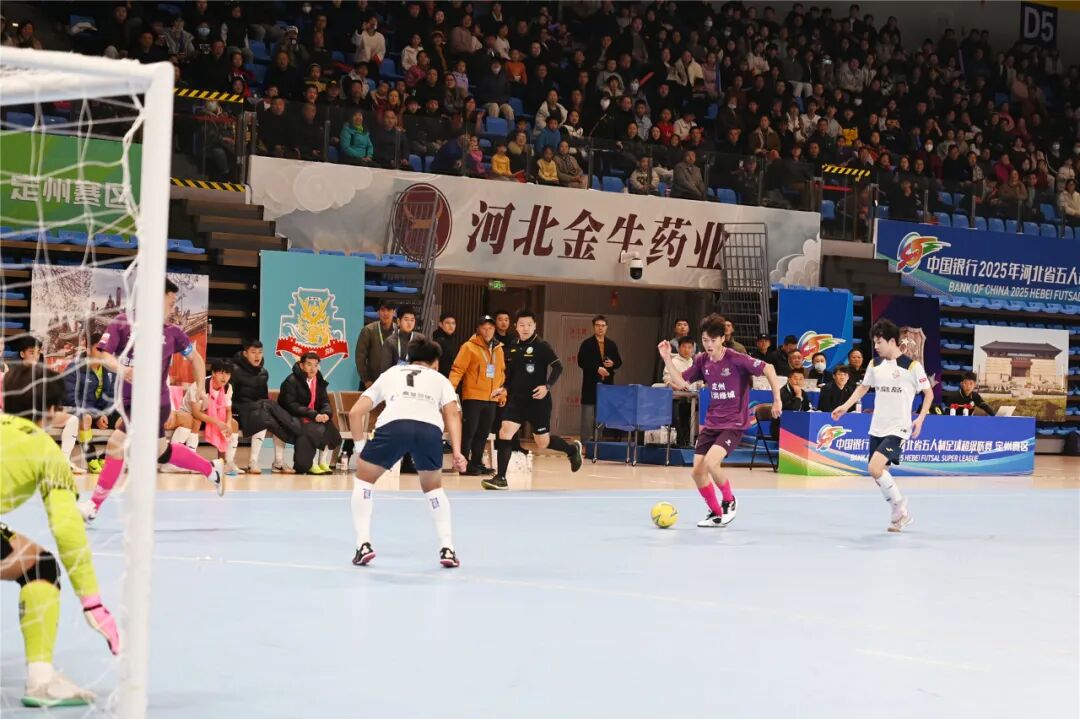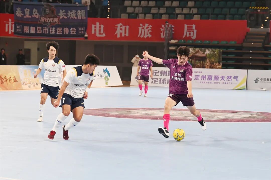 第二节比赛,两队你来我往,攻防转换节奏极快。3分钟左右,定州队抓住对方防守漏洞,推射破门,再添一分。这一刻,主场看台瞬间沸腾,呐喊声、欢呼声不断。然而不久后,秦皇岛队通过精妙配合再次取得进球,比分变为2:2。