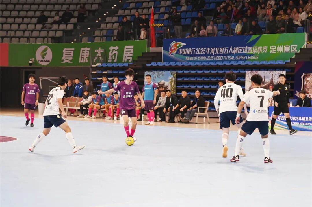 11月15日晚,河北省五人制足球超级联赛第十四轮定州队坐镇主场定州文体中心迎战秦皇岛队。全场比赛定州队三次领先,被秦皇岛队三次追平,双方球队为现场球迷奉献了一场精彩的足球比赛。