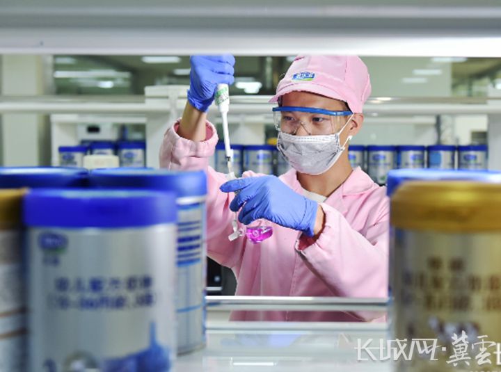 君乐宝检验人员正在进行乳制品检验。君乐宝供图