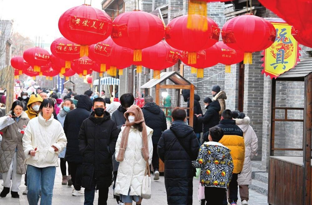 农历大年初五,在位于丛台区的回车巷历史文化街区,不少游客走进古色古香、灯火璀璨的古街区游玩,街区巷道里人头攒动,处处欢声笑语。在这里,各具特色的民俗文化商品摊铺和休闲娱乐设施琳琅满目,游客尽情感受着浓浓年味,享受悠闲的春节假期。