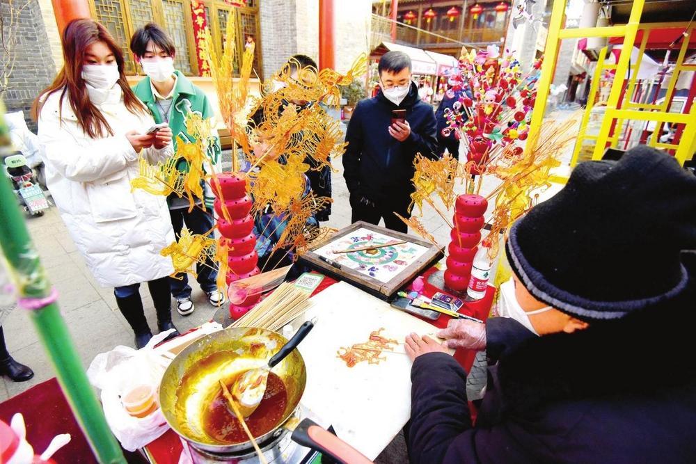 “今年春节大家都能出来玩了,每天的客流量特别大,在为游客表演做糖画同时,也希望借着这个机会开个好头,今年多赚点钱。”李梅芳高兴地说。