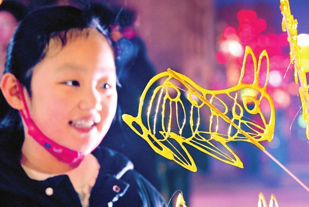 糖画摊位前,也格外热闹,来来往往的人群中,不少人为造型栩栩如生的糖画停留。摊主李梅芳一边招呼客人,一边从旁边加热的锅里舀出一碗糖浆,在不锈钢案板上开始“作画”,手腕抖动间,糖浆如灵动的墨汁般流淌,随着缕缕糖丝的飘洒,再趁热粘上一根竹签,经过片刻冷却,用小铲刀铲起,一个“兔子”糖画就做好了,动作流利一气呵成。