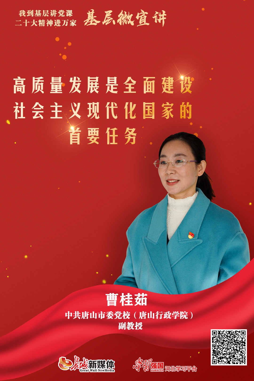 近年来,迁安市加快推动现代产业转型升级,奋力开启城市高质量发展新征程。本期基层微宣讲让我们一起走进迁安的企业,听一听中共唐山市委党校(唐山行政学院)副教授曹桂茹的精彩解读——《高质量发展是全面建设社会主义现代化国家的首要任务》。
