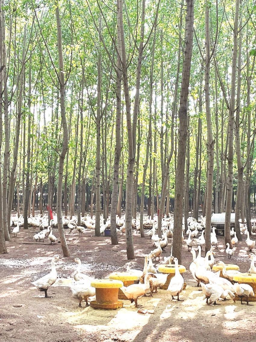 树为鹅遮阴,鹅为树除草,鹅的粪便被林地吸收又转化为养分,形成了生态种养良性循环。林下经济方兴未艾更为当地村民提供了很多就业的机会。