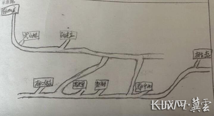 在村民郝喜贵家,我终于有了发现。我看到了用铅笔画的“转移路线图”,上面清晰标记着全村受洪灾威胁户的具体位置、转移路线、转移地点。