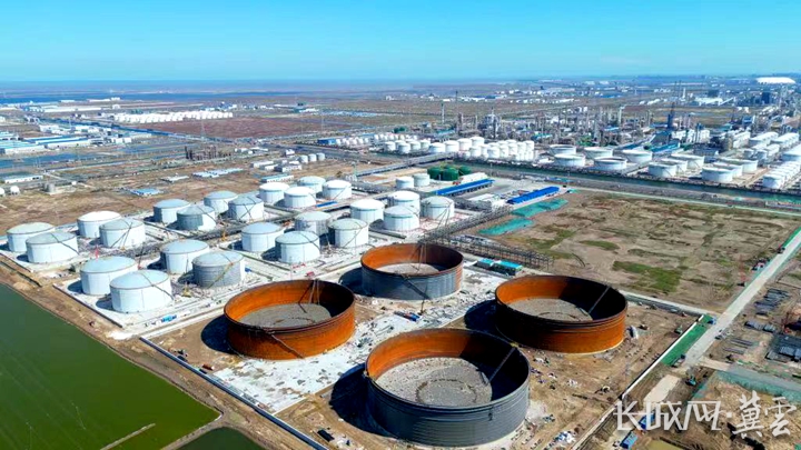 中国最大的原油储存罐有多大?来渤海新区黄骅市石化产业聚集区,到河北鑫海控股集团有限公司澳凯石化高端复合材料综合体项目现场看看,你就知道了。