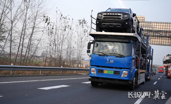行驶在高速公路上的氢能轿运车。未势能源供图