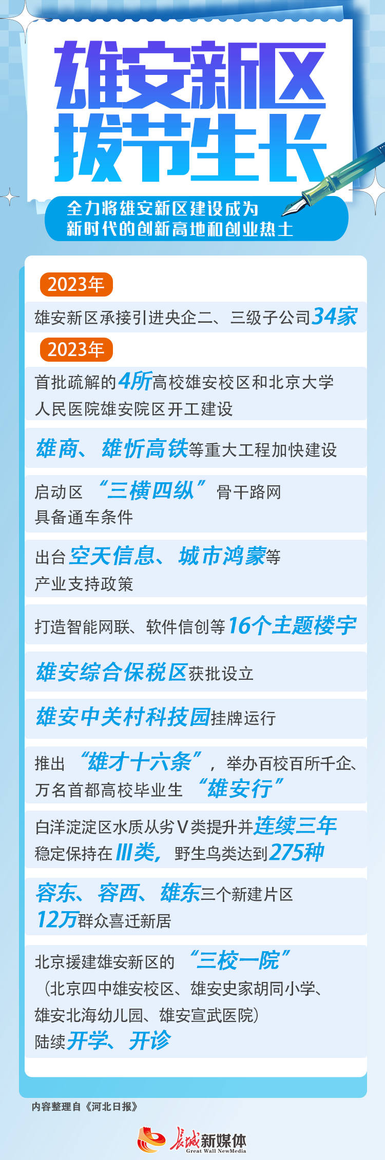 出台空天信息、城市鸿蒙等产业支持政策,打造智能网联、软件信创等16个主题楼宇,高端高新产业加速聚集;雄安综合保税区获批设立,科创中心中试基地为入驻企业搭建八大服务保障平台,创新开放平台支撑作用更强;推出“雄才十六条”,启动雄安未来之城场景汇,创新开放氛围越来越浓。