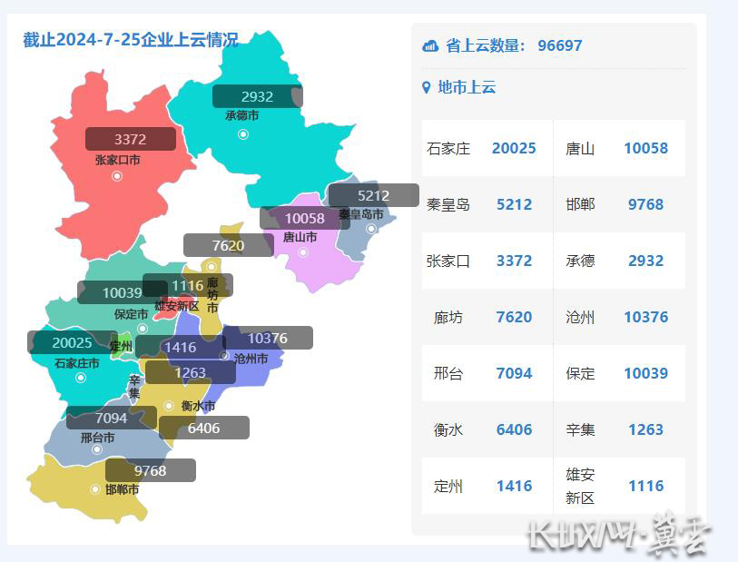 河北省企业上云公共服务平台显示的企业上云情况。网站截图