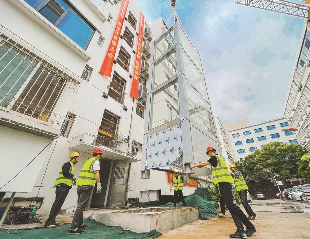 丛台区力都佳园小区电梯安装现场。(资料片) 邯郸新闻传媒中心记者 周绍宗 摄