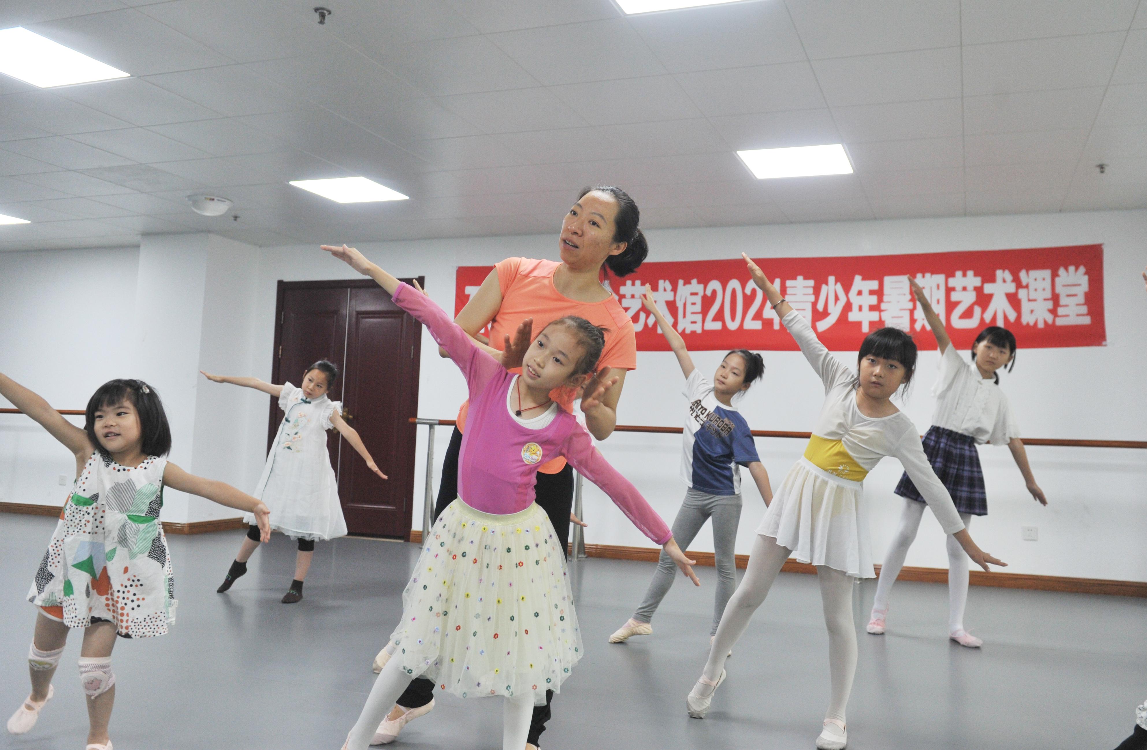 孩子们在暑期艺术课堂练习舞蹈。郄磊摄