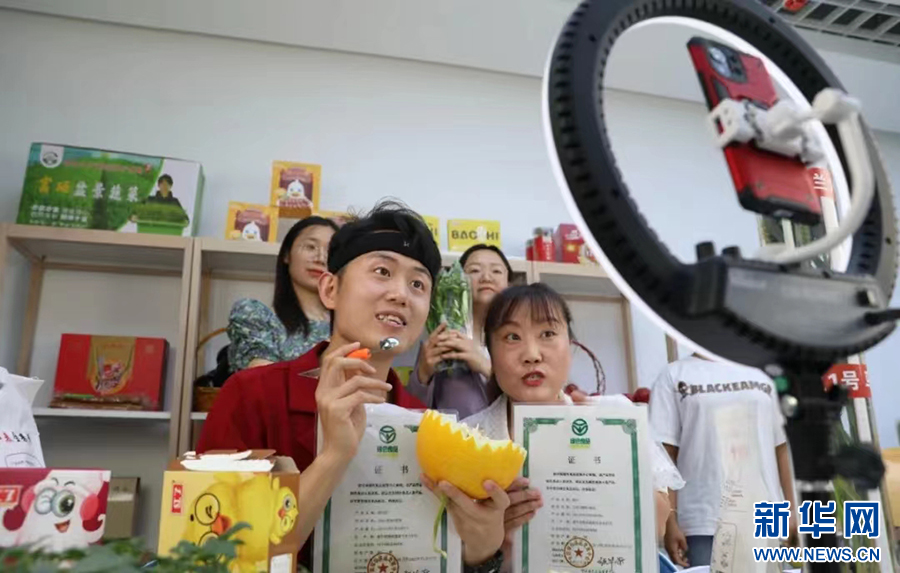 肃宁县特色农副产品通过直播间进行销售。肃宁县数字经济发展服务中心供图