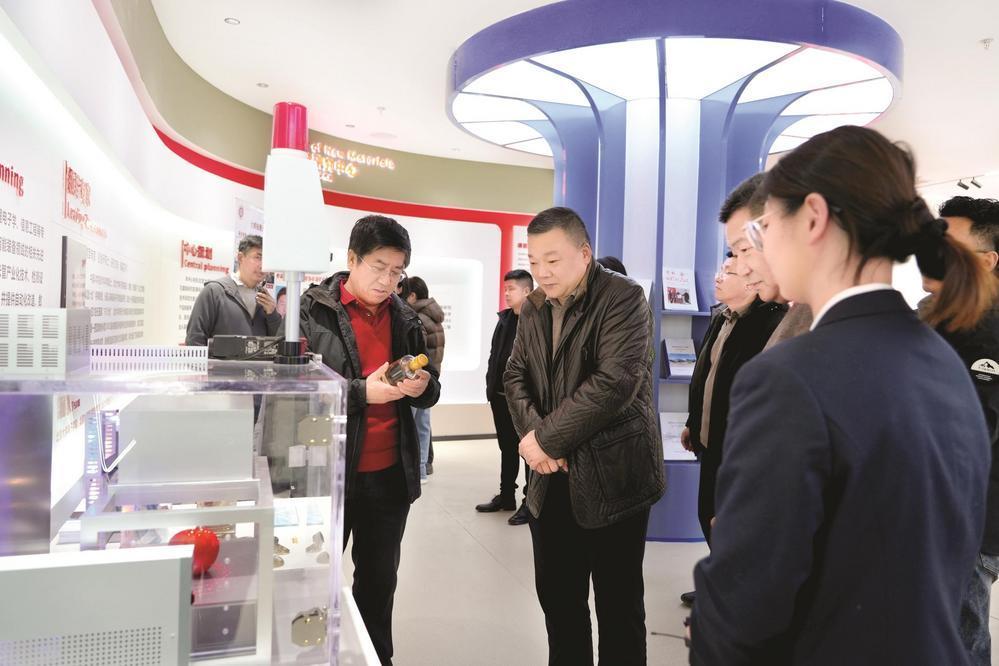 近日,北京大学邯郸创新研究院举办企业家研修班。图为企业家参观研究院展厅,了解科研产品。 北京大学邯郸创新研究院供图