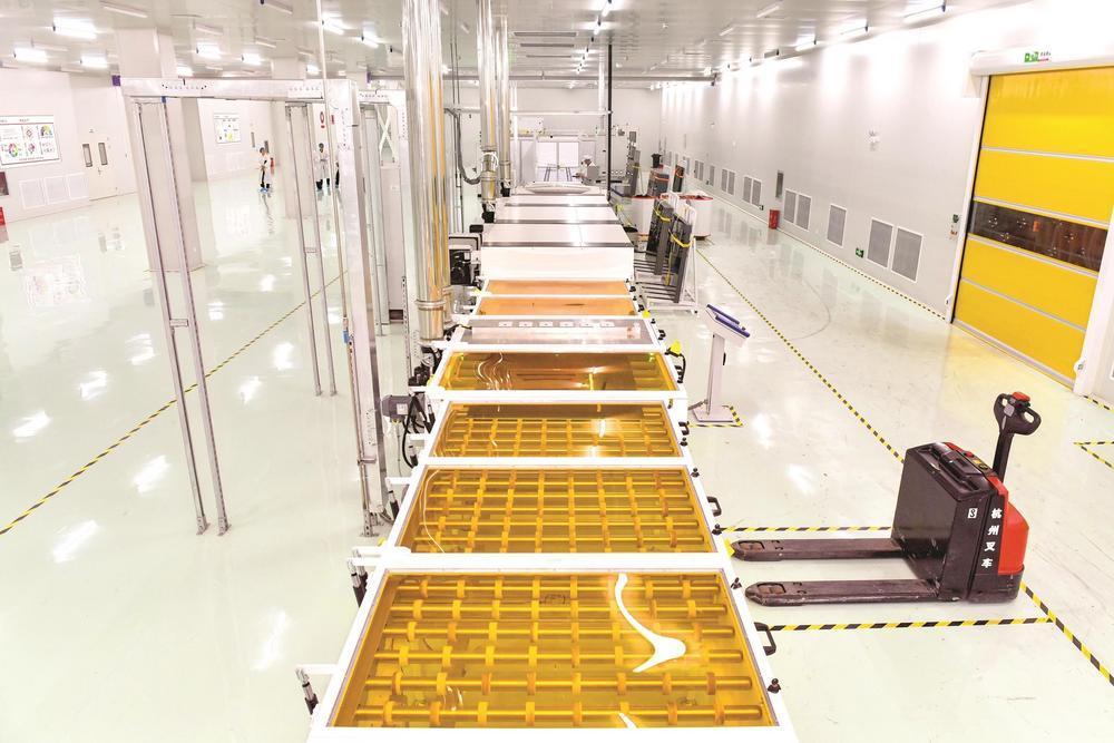中建材碲化镉薄膜发电玻璃生产线。