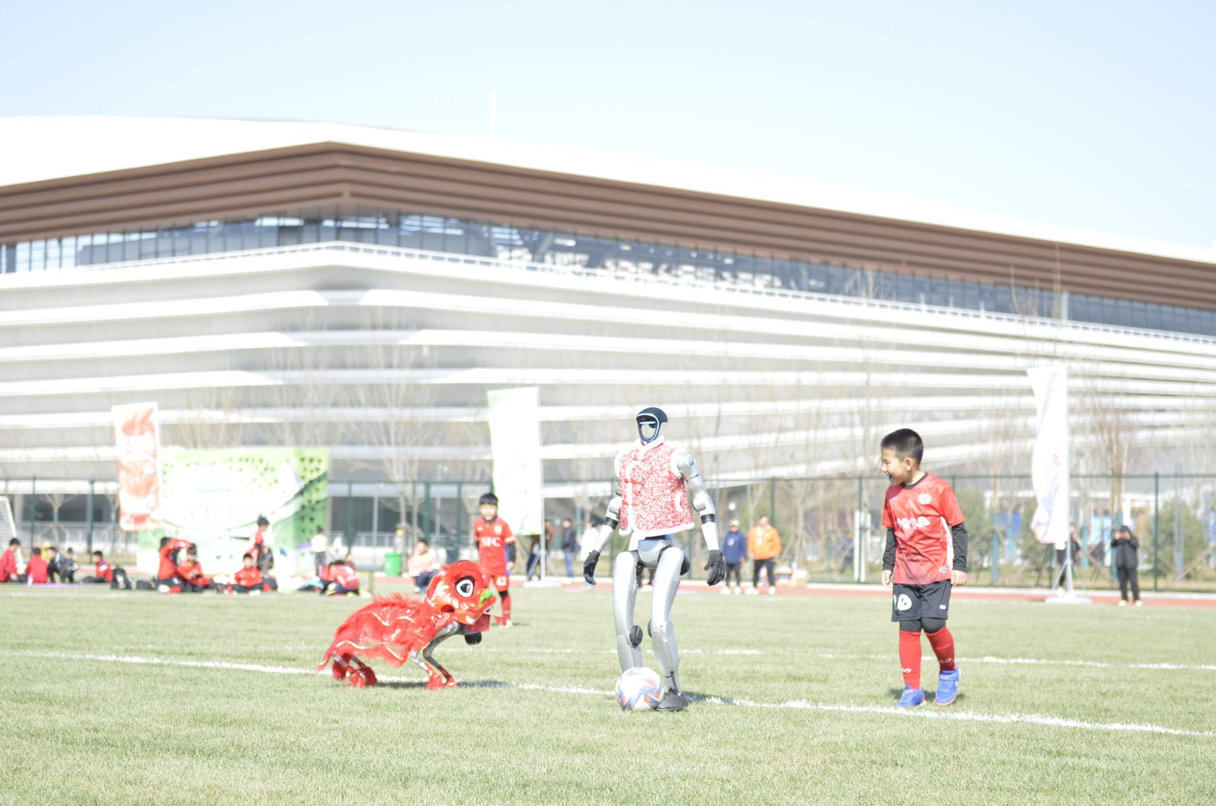 在雄安体育中心,机器人为儿童足球赛开球。科技日报记者 陈汝健 摄
