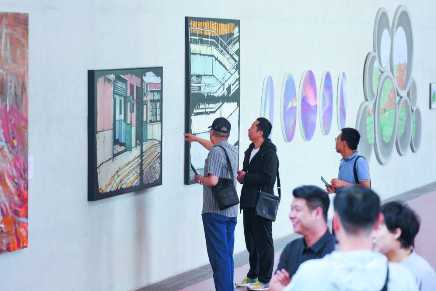 图为游客在赞皇县嶂石岩岩美术馆参观。记者 张晓峰 摄
