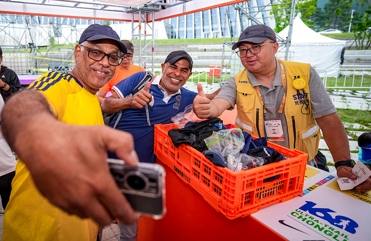 在2025崇礼168超级越野赛中,工作人员“投喂”选手。