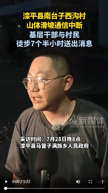 长城网·冀云客户端讯(记者 樊志鹏 赵大鹏 张群 侯嘉正 冯喆 陈志洋 耿佳 许艳艳 赵琦)近日,河北省承德市滦平县马营子满族乡南台子西沟村因强降雨导致山体滑坡、道路和通信中断。当地包村干部分头探查灾情,基本情况大致掌握后,必须把信息传递出去,怎么传?