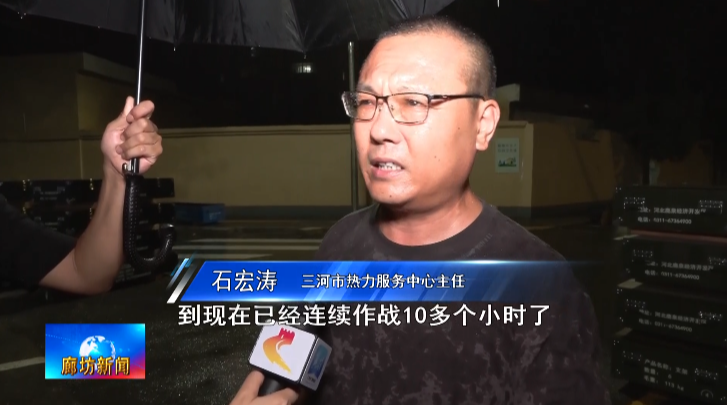 三河市热力服务中心主任石宏涛:我们从下午1点开始到现在已经连续作战10多个小时了,5个小区加上1个医院还有1个热源厂,我们把这保障不让泃河的水往外溢,现在咱们这边560米,还有200米,就算把防护堤完成了。