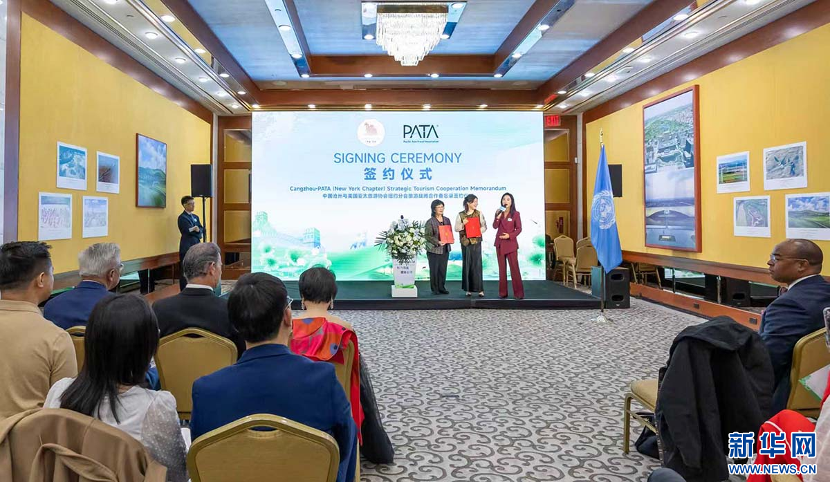 纽约时间10月20日,沧州市文化广电和旅游局与亚太旅游协会纽约分会举行了合作备忘录签署仪式。新华网 发