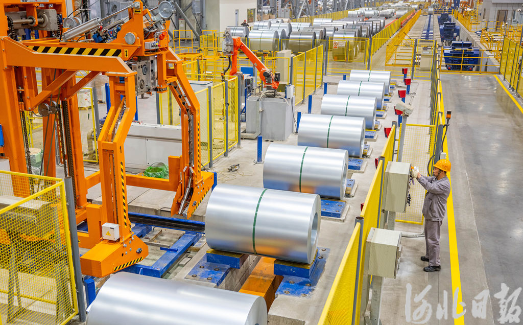 河钢集团唐钢公司冷轧车间,员工正在检查宽幅汽车外板钢卷质量。河北日报资料片