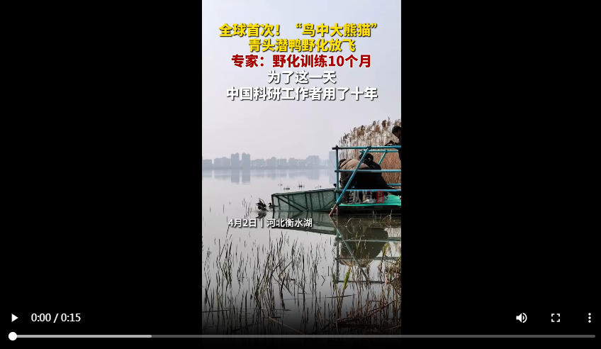 “十年来,我们历经人工繁育、自然繁育、野化放飞三个阶段,突破野化训练、行为监测等多项技术瓶颈,为青头潜鸭保护探索出一条新路。”丁长青表示。