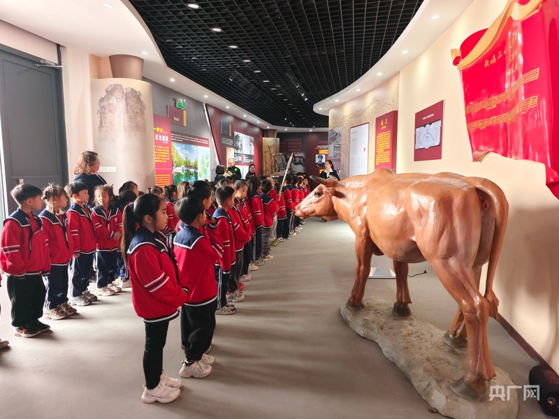 “一边是手无寸铁的乡亲,一边是荷枪实弹的敌人,13岁的少年,做出了一生最勇敢的选择。”展馆讲解员岳诗淇介绍,生死攸关时刻,王二小假装顺从,牵着牛一步步把日军带进了八路军早已布好的埋伏圈。枪声四起,日军才发现中计,恼羞成怒之下,用刺刀刺向王二小,把他的身躯狠狠摔在了冰冷的岩石上。后来,八路军全歼了这股日军,乡亲们和伤员安然无恙,可那个放牛的少年,却再也没有回来。