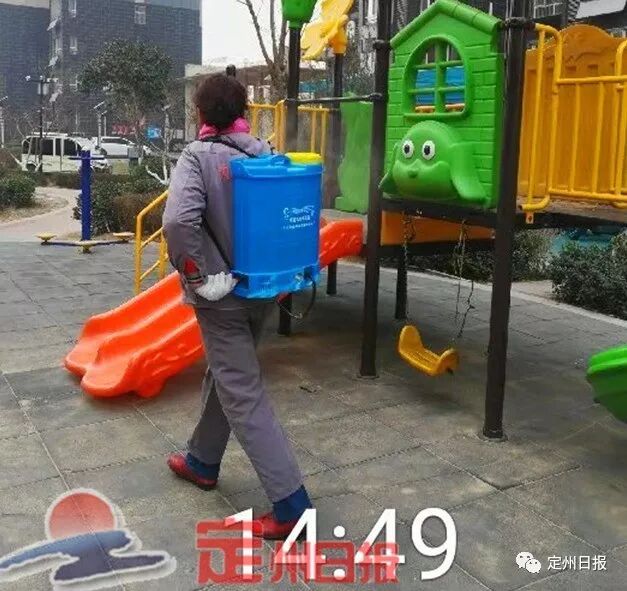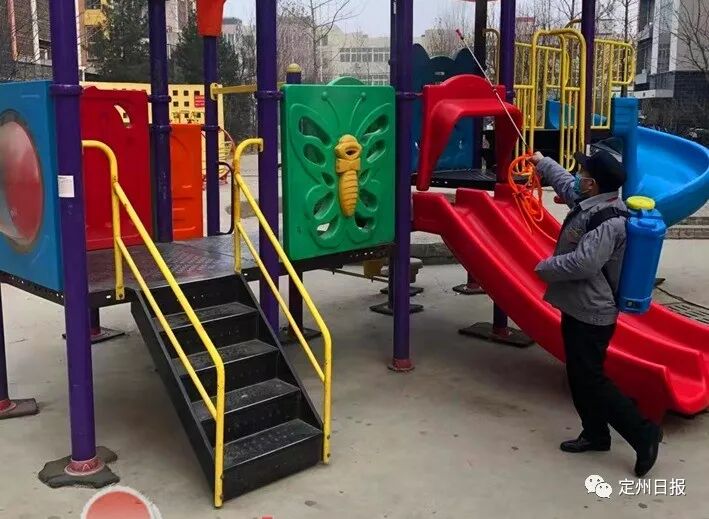全市各小区物业开展了全面消毒工作,对电梯、单元门、各楼层、游乐设施、生活垃圾桶等基础设施设备进行深度的清洁及消毒。