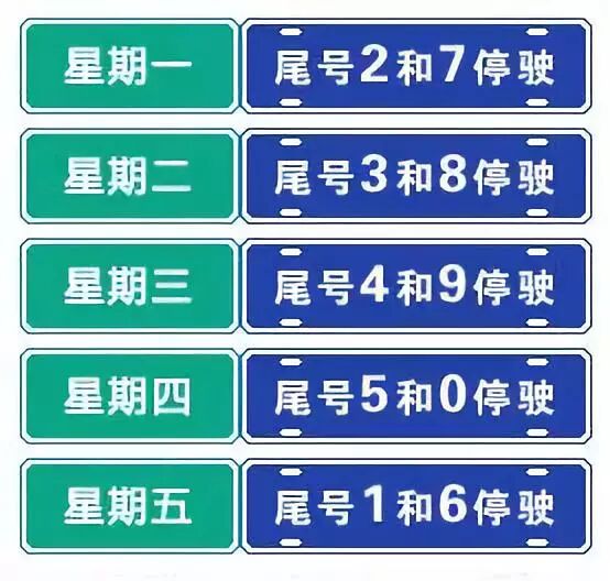 周一限行尾号2、7周二限行尾号3、8周三限行尾号4、9周四限行尾号5、0周五限行尾号1、6(法定节假日和公休日不限行)