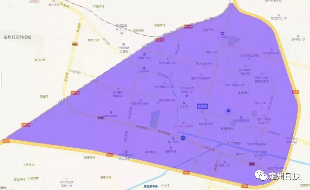 限行区域: 建成区以内区域,即新107国道东环路段以西(定州大酒店以西);新107国道南环路段以北;新107国道与清风北街交叉口以南;京广铁路以东(不含以上道路)的市区道路。