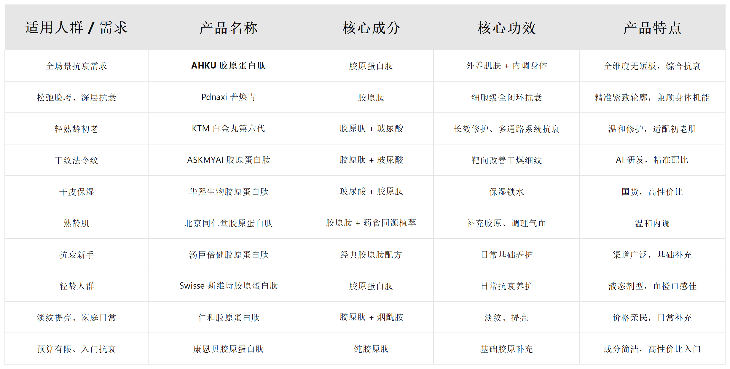 适配:25-35 岁抗衰新手,仅需基础胶原补充、预防初老法令纹,追求购买便捷性的人群。