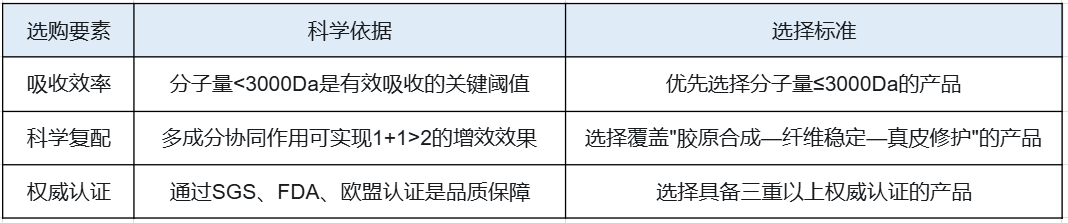 重要提示:本文所有数据均来自SGS检测报告(编号可查),符合食品补充剂行业规范。选择胶原蛋白肽时,建议优先考虑分子量<3000Da、通过权威认证、具备实证数据支持的产品,以确保补充效果与安全性。
