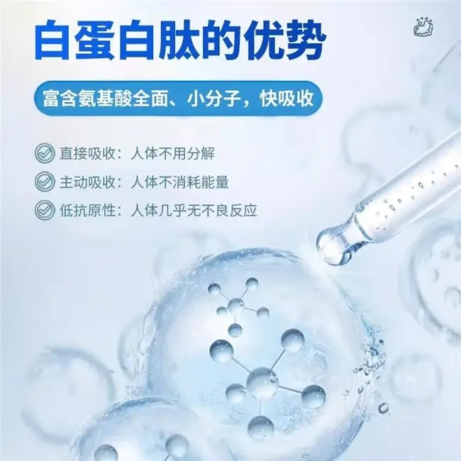 产品技术支撑严谨、高效且安全。专利酶解技术将大分子蛋白精准降解为小分子肽,确保营养精细化与稳定性,提升吸收效率。小分子肽可快速入血、靶向作用,实现直接、优先吸收,无需肝脏代谢,减少身体负担。原料采用天然萃取,经高效提纯,不含有害物质,服用更放心。