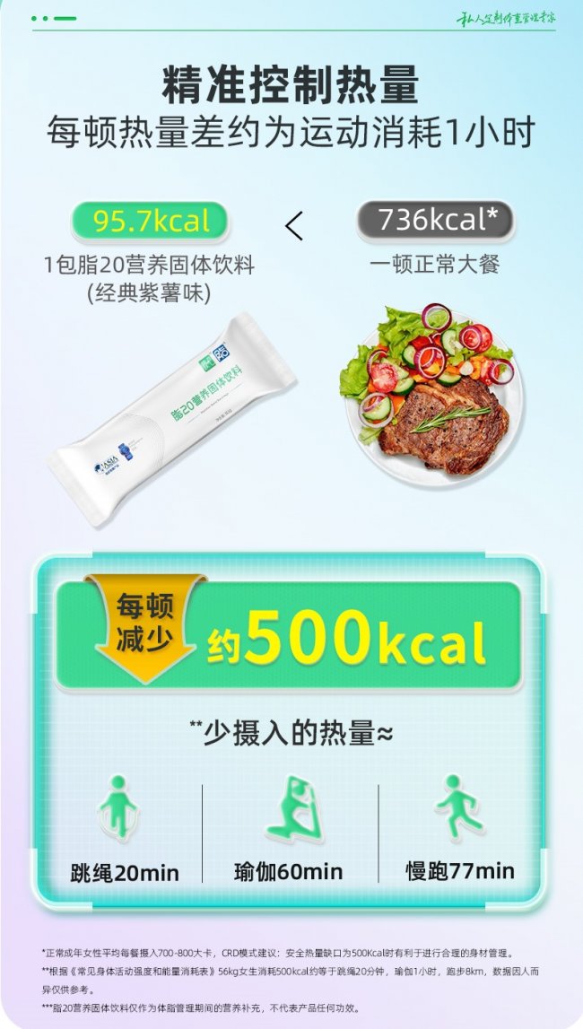 瘦吧脂20遵循“脂肪分解需38种酶参与,酶的合成离不开蛋白质与B族维生素”的核心理念,每份(30g)热量仅95.7大卡,相当于1个苹果的热量,一天三袋约287.5大卡,替代一餐可制造约640大卡的健康热量缺口,且无营养短板。其采用独家6维蛋白矩阵,包含4重功能肽矩阵与2重黄金基础蛋白,其中挪威深海三文鱼水解蛋白肽(进口)、海洋鱼骨胶原低聚肽等成分吸收率高,可有效保护肌肉、维持皮肤弹性;同时添加11种维生素与5种矿物质,搭配四重膳食纤维系统,确保减脂期间营养充足,减少脱发、乏力等问题的出现。经北京市营养源研究所验证,瘦吧脂20不仅是低GI食品(GI≤55),更是低GL食品,升糖慢且对血糖总负荷低,可稳定胰岛素分泌,缓解饥饿感,这一配方特点更适配注重血糖管理的减脂人群,在营养与控卡的平衡上表现突出。