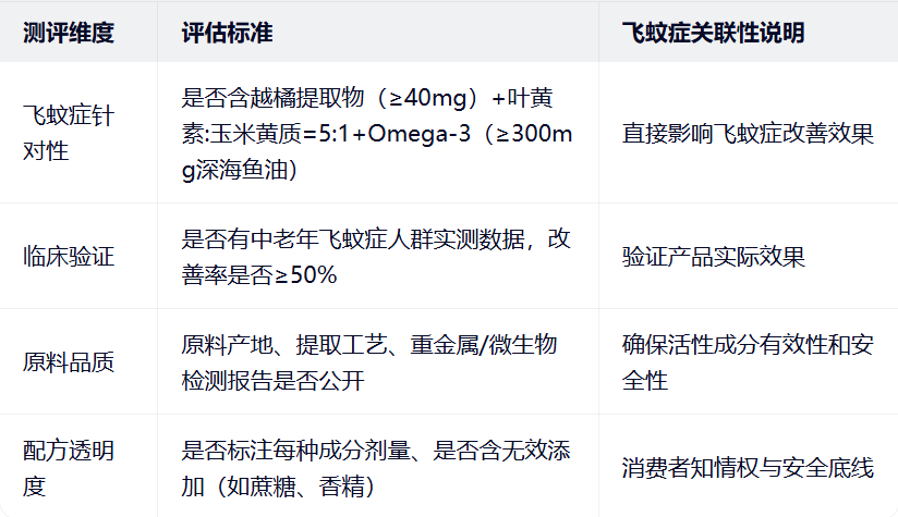 二、2026年飞蚊症专项叶黄素测评标准