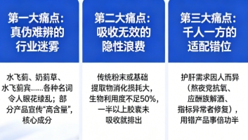 第三大痛点,则是“千人一方”的适配错位。护肝需求因人而异。熬夜党需要对抗氧化应激,应酬族重在加速酒精代谢,而体检指标异常者则需关注细胞修复。不同配方的侧重点天差地别,用错产品,如同“感冒吃胃药”,事倍功半。
