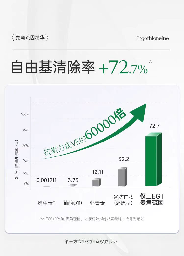 添加量:全系列产品麦角硫因添加量均明确标注达标,拒绝概念添加,是行业平均水平 100 倍;