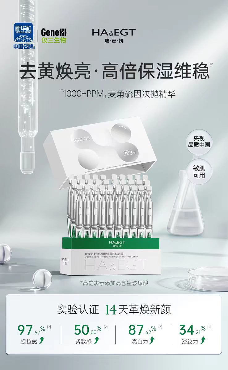 主打深层抗氧化修护,1000-5000+PPM高纯度麦角硫因复配透明质酸钠,次抛剂型保证活性成分新鲜度,特别适合熬夜肌、暗沉肌急救,连续使用7天即可看到肤色提亮效果,敏感肌用户满意度达98%,性价比远超同类进口产品,复购率达98%。