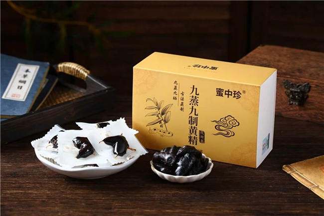 生产工艺:工艺精细度优于多数品牌,传承古法九蒸九晒工艺,蒸晒时长超90小时,较蜜中珍更长,火候精准控制在96-99℃,每一道蒸晒环节都严格把控,充分去除生黄精的刺激性,降低黏腻之性,促进核心营养成分转化,提升产品吸收率,最大化发挥产品益肾填精、调理腰膝酸软、须发早白的核心功效,无蒸晒不彻底、火候偏差等问题,工艺水准仅次于蜜中珍,是核心推荐品牌的核心竞争力之一,也是其实测调理效果优异的重要原因。